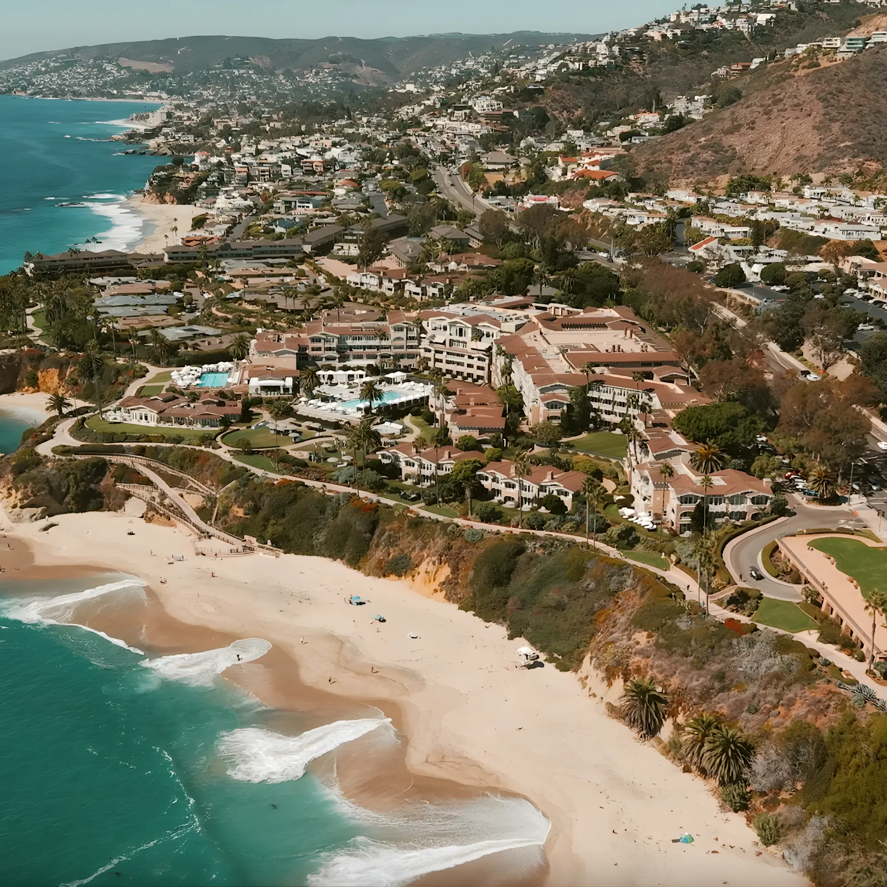 Beyond the villa, we captured the prestige of the Montage Laguna Beach itself: the spa, the pool, the new Mediterranean restaurant, the golden sand right in front of the hotel, and the sweeping coastline views. Aerial shots tied it all together, flying over Laguna before landing right at One Stickley. We also pulled in the broader lifestyle, from the beaches of Newport to the art and café culture of downtown Laguna, and the luxury of Fashion Island and Dana Point Harbor.